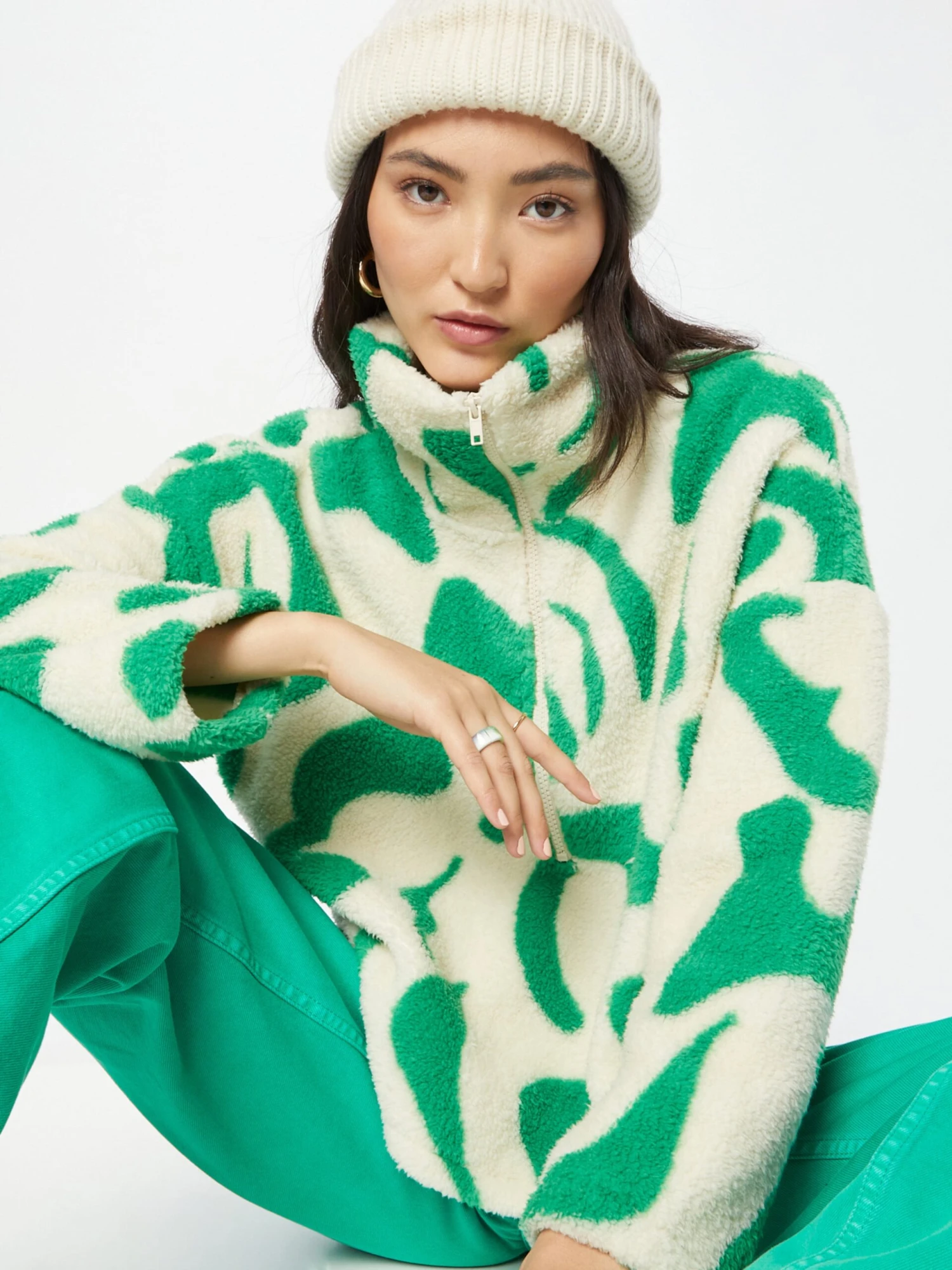 Pull camionneurOurlet / bord surpiquéÉpaules largesDemi-zipMotifs all-overPoignée structuréeFermeture à glissière