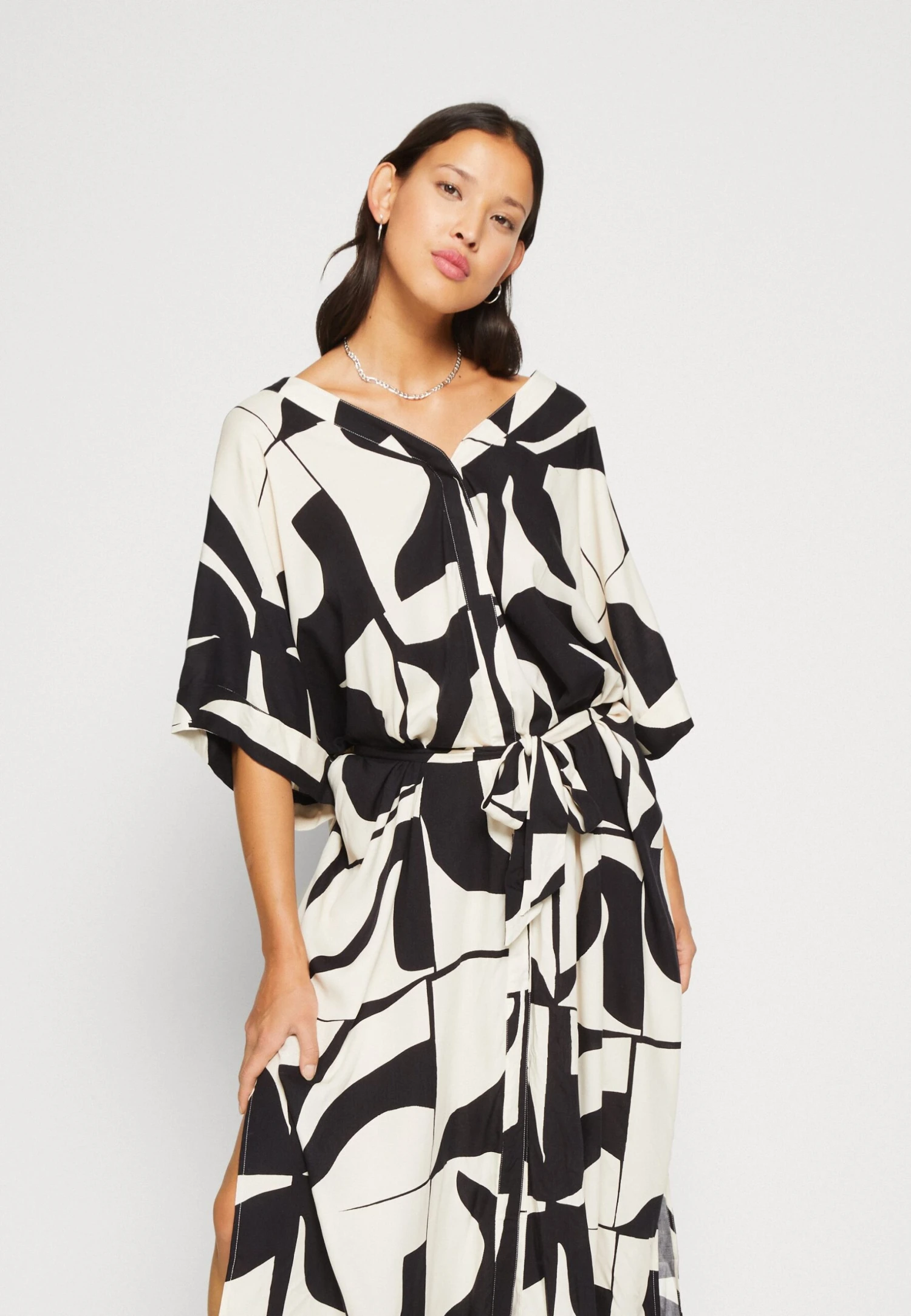 Monki Robe Chemise – Black/White