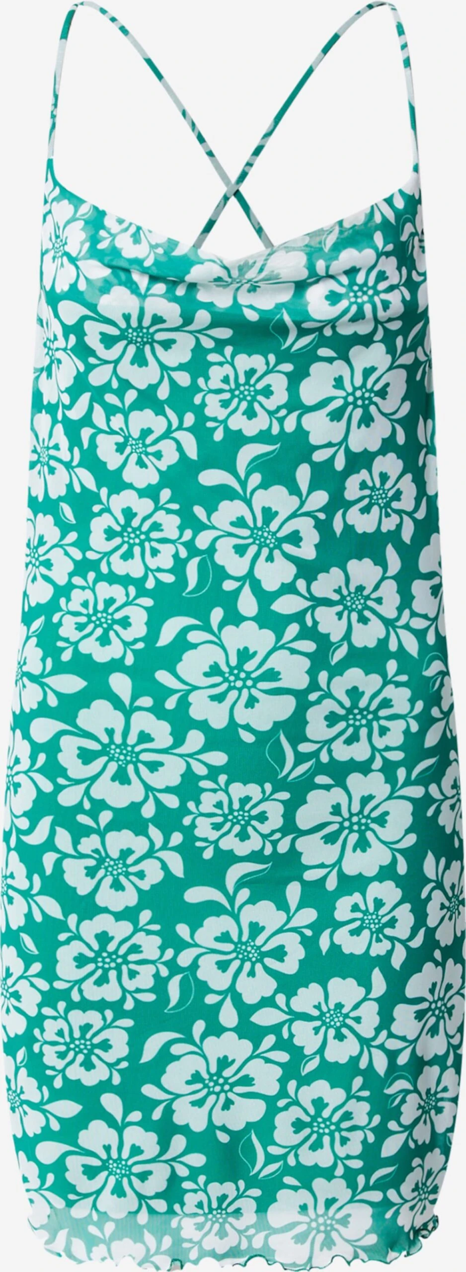 À fleursBretelles spaghettiCol cascadeCoupe droiteOurlet en forme de vagueDécolleté dans le dosMotifs all-overTissu fluide