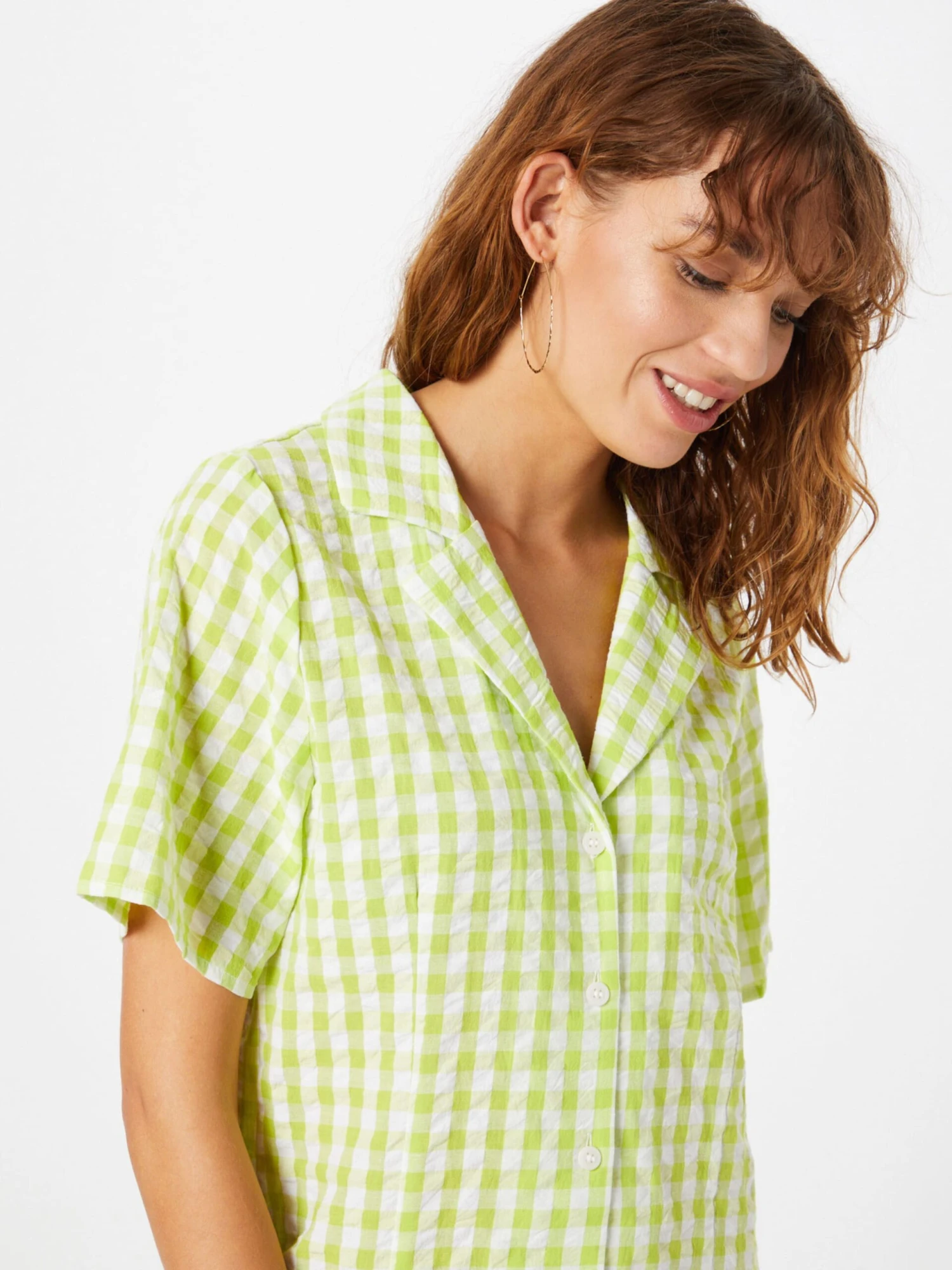 À carreauxCotonBoutonnièreCol à reversMotifs all-overSurface structuréeDoux au toucherFermeture à bouton