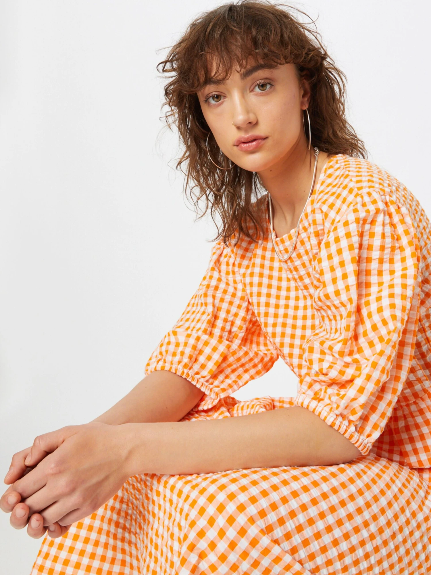 À carreauxCotonCol rondDécoupesDrapé / froncéOurlet / bord surpiquéFermeture KeyholeÉpaules largesMotifs all-overTissu fluideFermeture à bouton