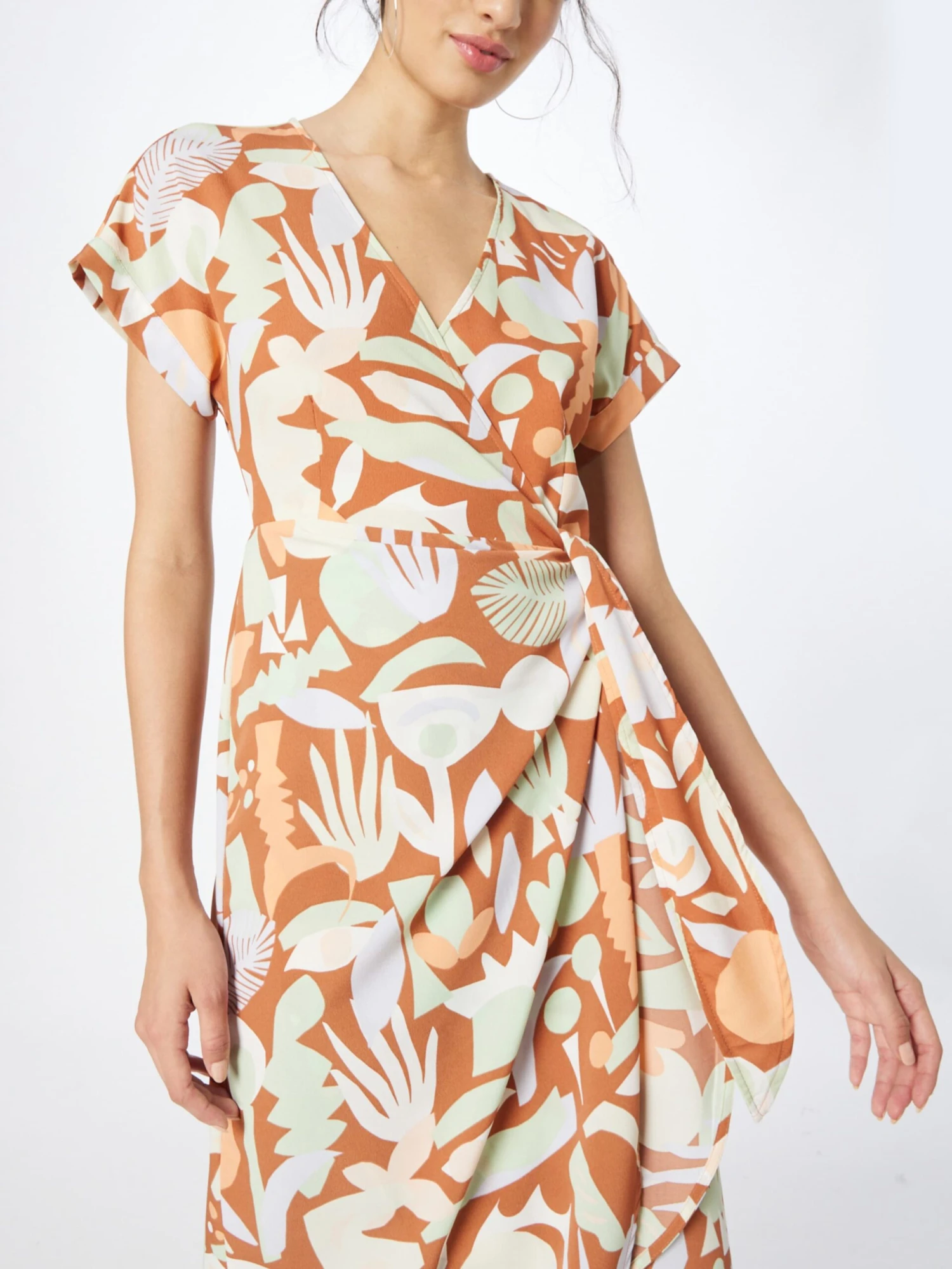 Drapé / froncéOurlet / bord surpiquéManches coupéesRevers de manchesAvec ceinture / cordonEffet cache-cœurMotifs all-overTissu léger